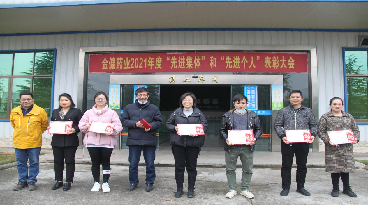 2021年,在公司领导的正确领导下,在全体员工的共同努力下,药业公司全体紧紧团结在一起,攻艰克难、锐意进取,生产经营各项工作都取得了长足进步,企业逐步摆脱多年亏损的不利局面,实现了近10年来的首次盈利。为表彰在企业发展中做出积极贡献的先进集体和个人,树立典型,弘扬正能量,4月1日,公司在二车间前坪举办了金健药业2021年度“先进集体”和“先进个人”表彰会,公司班子成员出席本次表彰会并为获奖集体和人员颁奖,来自公司的2个先进部室、7个先进班组、32名公司先进个人、8名集团优秀员工、5名集团工会积极分子获得了表彰。公司执行董事兼总经理张林希望全体员工向先进看齐,爱岗敬业,拼搏进取,在工作中注重“实效”,将各项具体事务积极主动推进落实,为公司更加美好的明天共同奋斗。